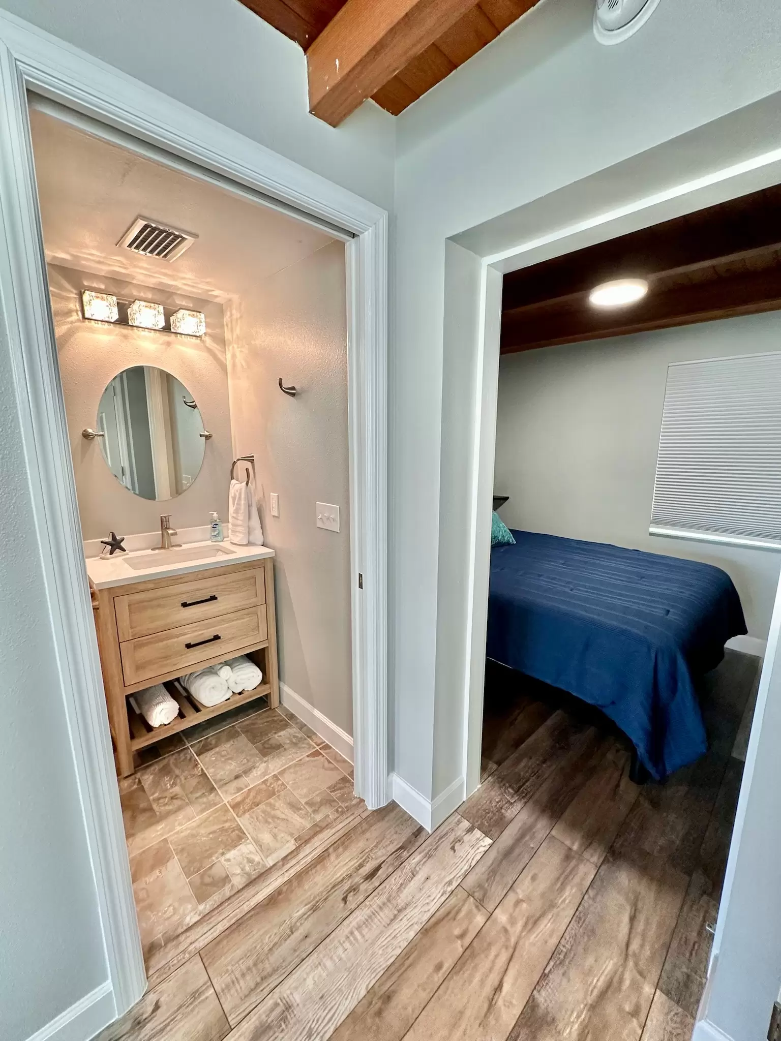 Sweet spot in a convenient quiet location. The recently remodelled cottage we stayed in was cute as a button and space was used extremely efficiently. Well furnished and comfortable. The spiral stairs were a challenge the first couple of uses but were a cinch after a little practice. Rick and Erica were super hosts and most accomodating. A great place to hide away.